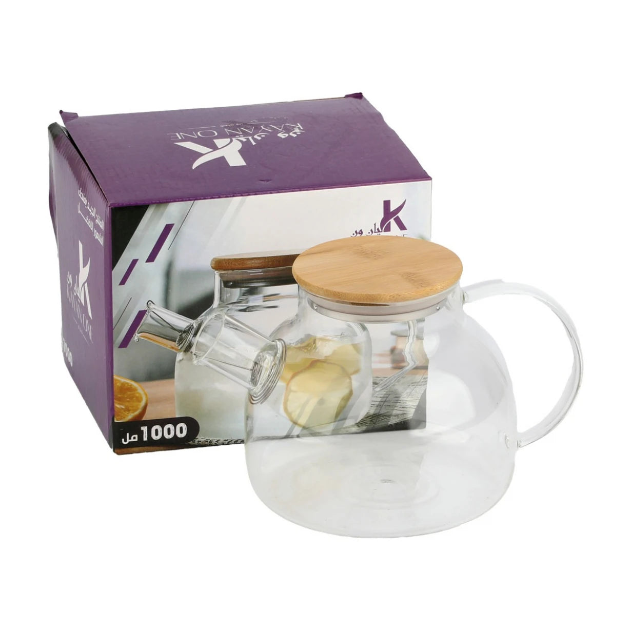 ابريق زجاج بغطاء خشب 1000 مل