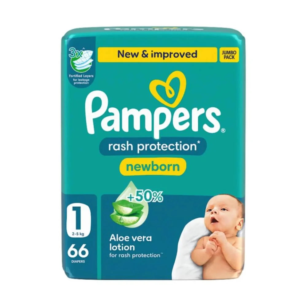 بامبرز حفاضات للاطفال بشريط لاصق للحماية من الطفح الجلدي مقاس 1 عبوة جامبو 66 حفاضة - الراحة والأمان لرضيعك