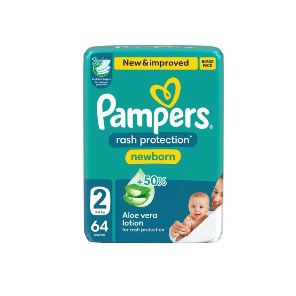 بامبرز حفاضات للاطفال بشريط لاصق للحماية من الطفح الجلدي مقاس 2 عبوة الجامبو 64 حفاضة - الحماية المثالية لبشرة طفلك