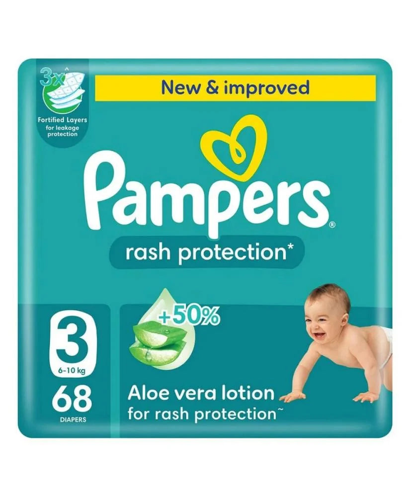 بامبرز حفاضات للاطفال بشريط لاصق للحماية من الطفح الجلدي مقاس 3 العبوة الكبيرة 68 حفاضة - راحة وحماية مثالية لطفلك