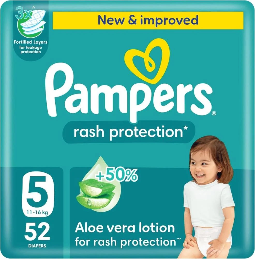 بامبرز حفاضات للاطفال بشريط لاصق للحماية من الطفح الجلدي مقاس 5 العبوة الكبيرة 52 حفاضة - حماية مثالية لبشرة طفلك