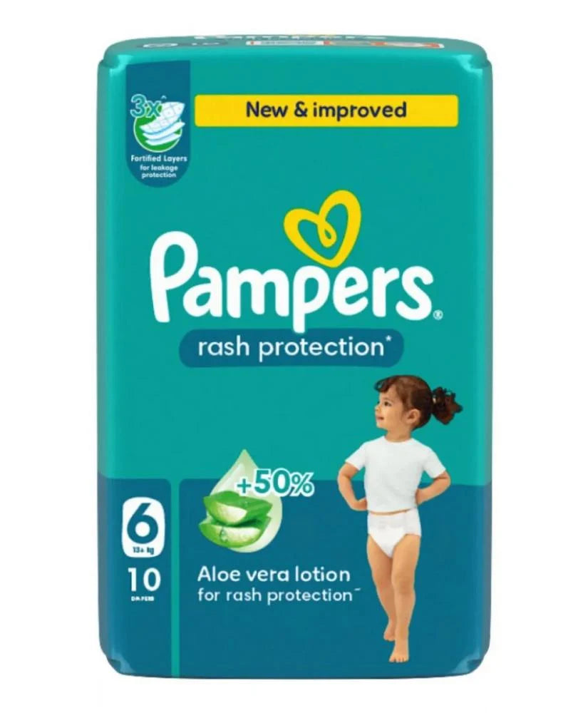 بامبرز حفاضات للاطفال بشريط لاصق للحماية من الطفح الجلدي مقاس (6) 10 حفاضة - الحماية المثالية لبشرة طفلك