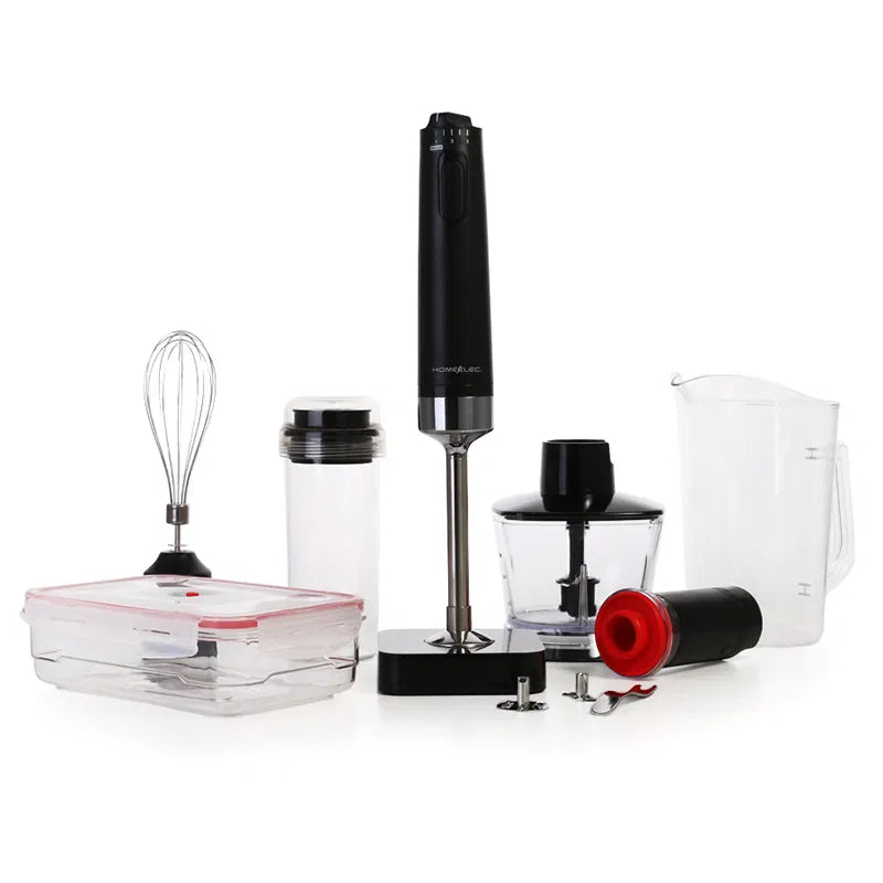 خلاط يدوي هوم إلك يحتوي على زر التحكم بالسرعة في اعلى الجهاز خمس سرعات مختلفة زر التشغيل والايقاف حوض عامود الخلاط قابل للازالة حامل الشفرات + ( شفرة متعددة - شفرة اللحوم - خفاق - مزيل الشفرات ) خفاق بيض + كوب 2200 مل اسطوانة تفريغ + مفرغ الهواء قطاعة + وعاء التفريغ اللون أسود 220-240 فولت 600 واط صناعة كورية ضمان 3 سنوات