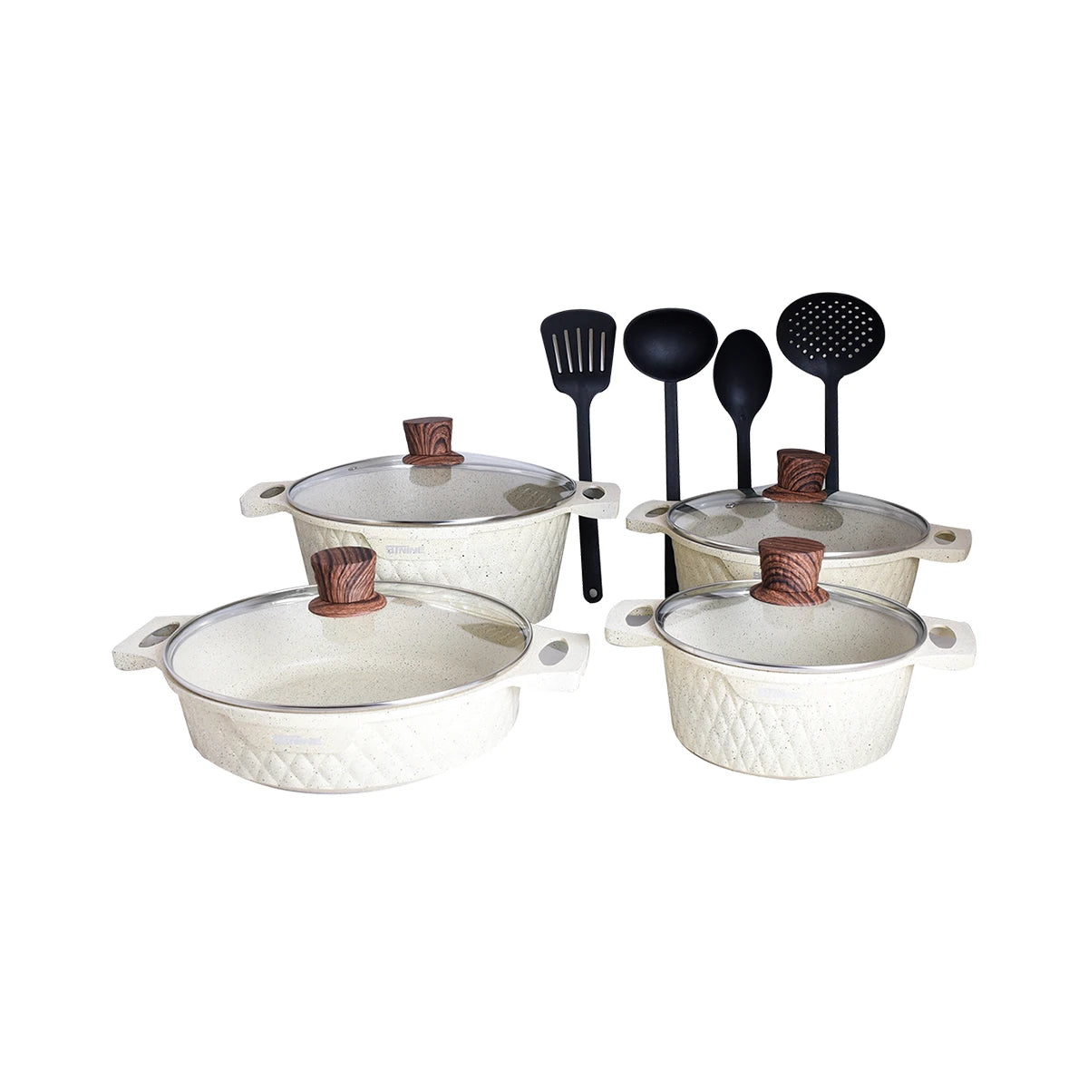 طقم قدور طبخ جرانيت عالية الجودة لتحضير العديد من الأكلات اللذيذة والشهية .