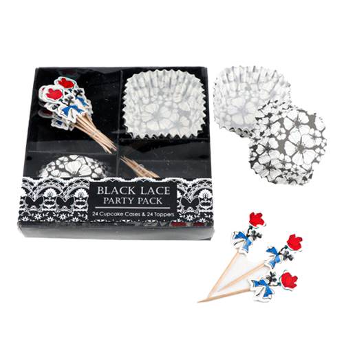 The envelope dessert set contains paper cupcake molds with different colored decorations, 2 sets