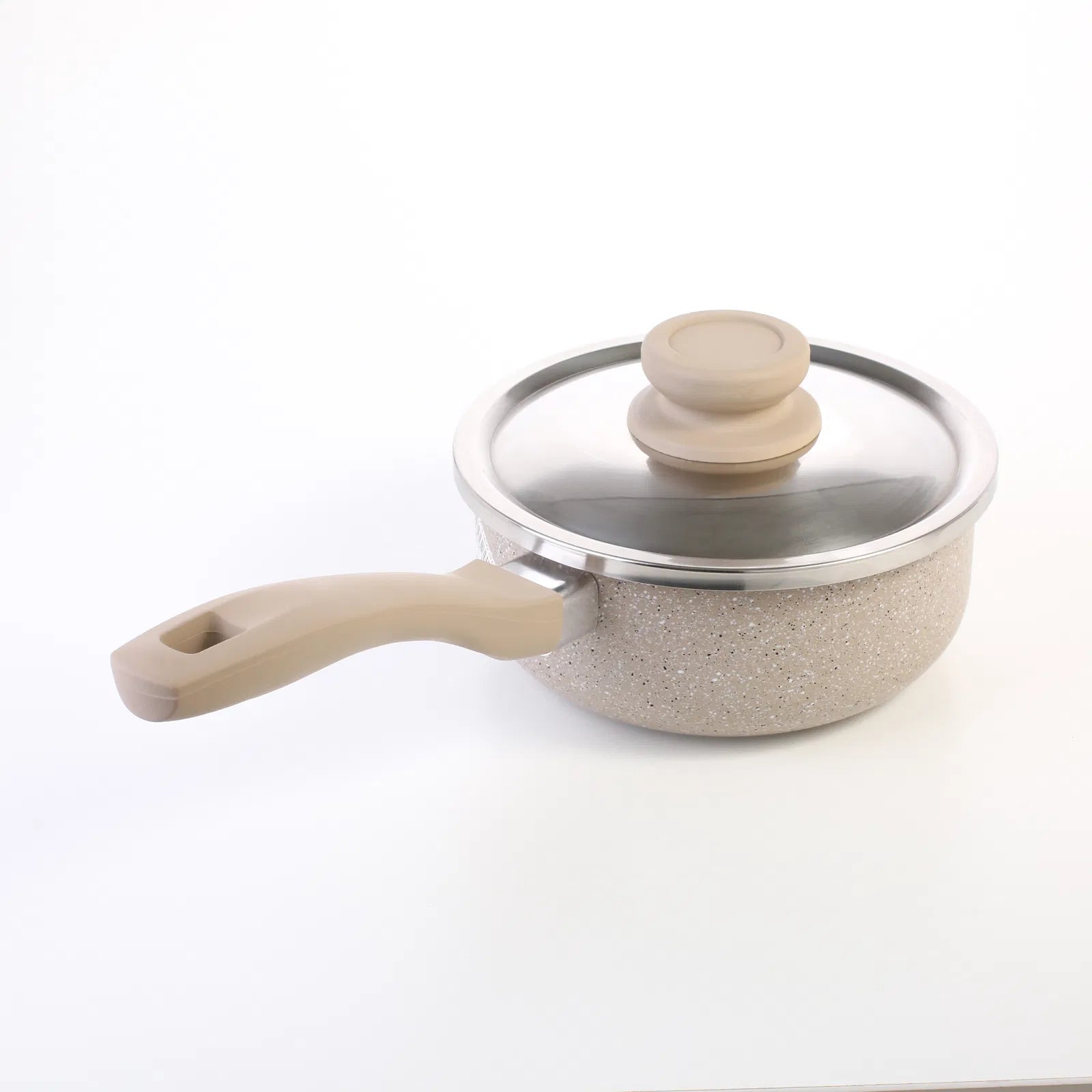 قدر كسرولا جرانيت غطاء استيل خاصية عدم الالتصاق مقبض مقاوم للحراره سهولة التنظيف مقاس 16 اللون بيج