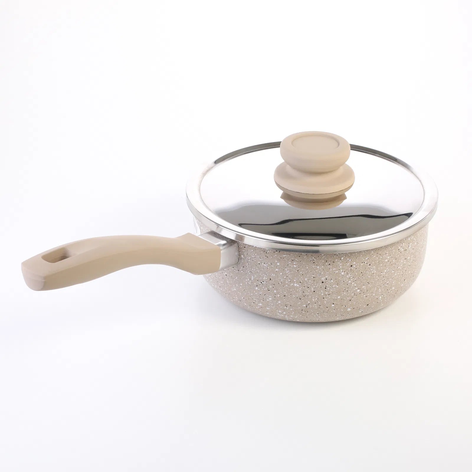 قدر كسرولا جرانيت غطاء استيل خاصية عدم الالتصاق مقبض مقاوم للحراره سهولة التنظيف مقاس 18 اللون بيج