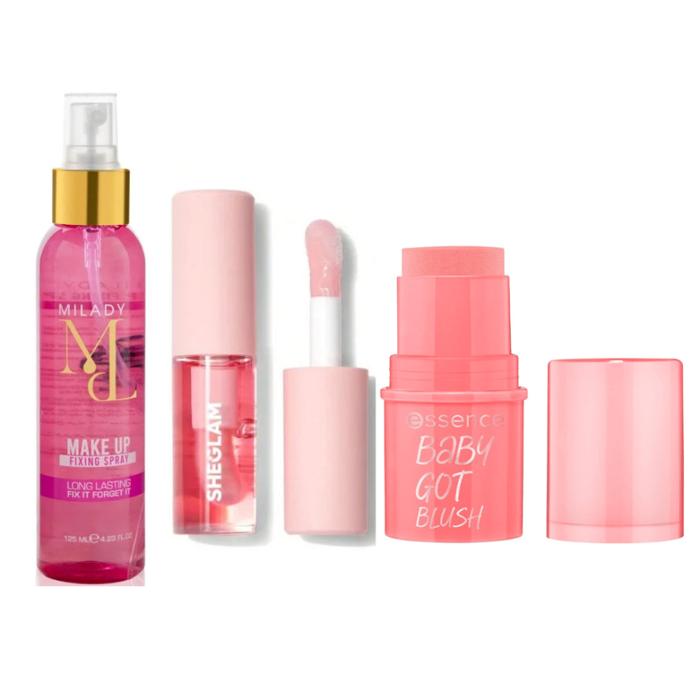 مجموعة مكياج ميني جلام – 3 قطع أساسية لإطلالة يومية متألقةبخاخ، بلاشر، وزيت شفاه في مجموعة واحدة أنيقة!