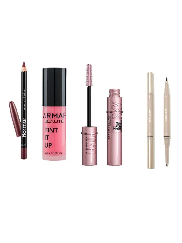 • إطلالة متكاملة في دقائق — شفاه محددة، خدود موردة، رموش مدهشة، وحواجب مرتبة.