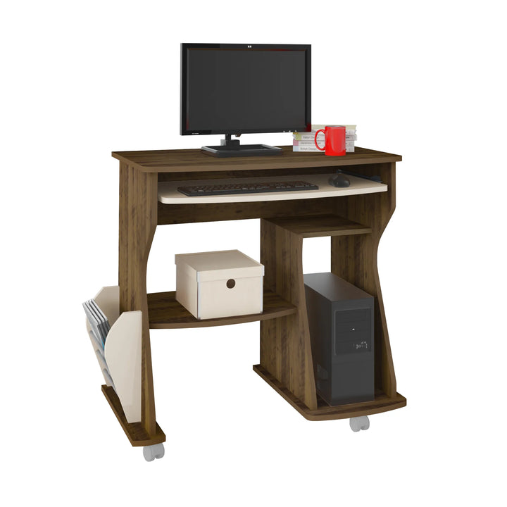طاولة كميوتر منزلي لغرف المنزل مع عجل صنوبرمع ابيض