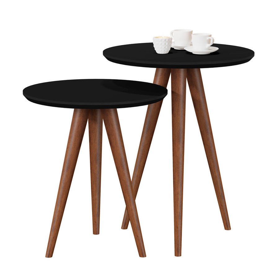 2 Pieces Round Coffee Table Set for Living Room and Home Black