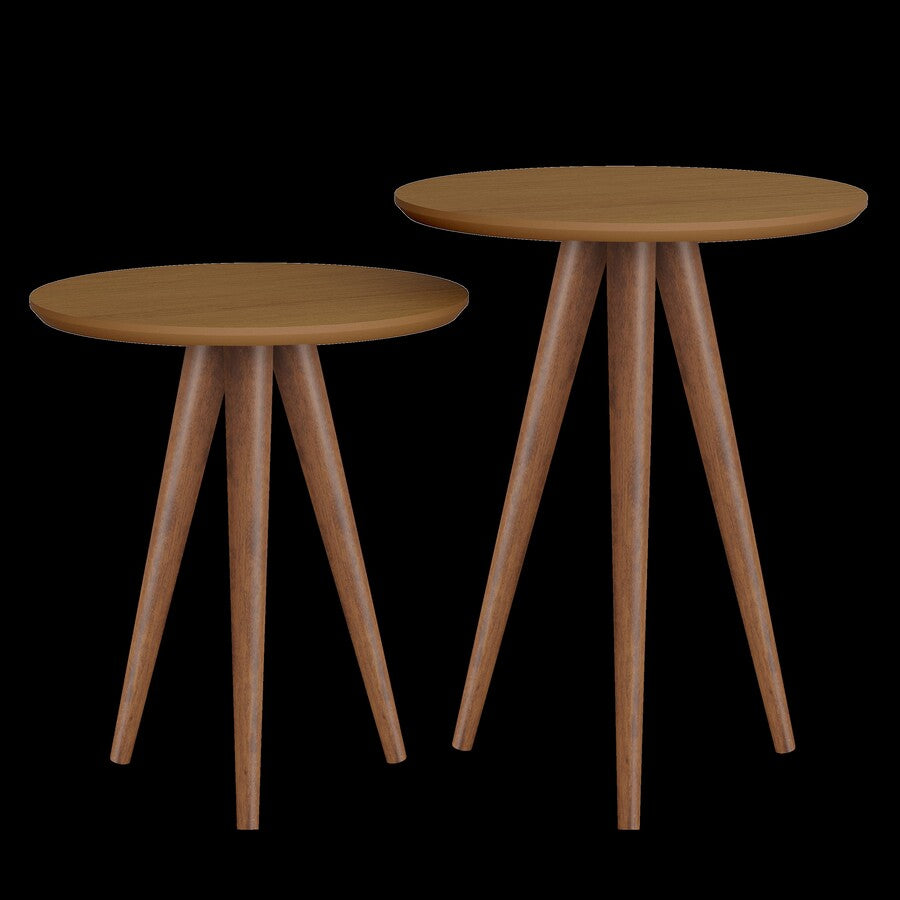 طقم طاولة قهوة دائرية 2 حبة لغرف المعيشة والمنزل لون بني طبيعي