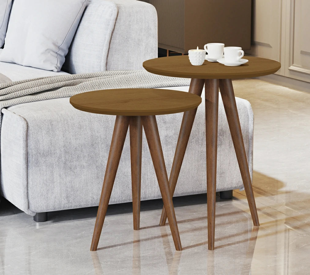 2 Pieces Round Coffee Table Set for Living Room and Home Natural Brown Color