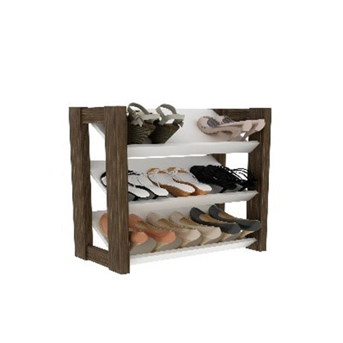 Modern 4-level shoe rack for living rooms and homes, white/brown