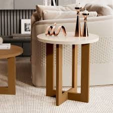 طاولة قهوة دائرية خدمة صغيرة لغرف المعيشة والمنزل لون ابيض