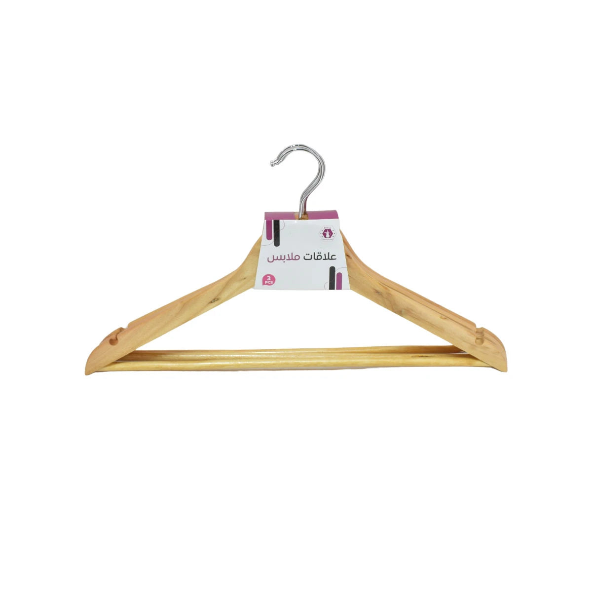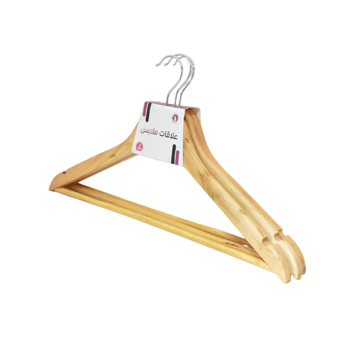 علاق ملابس خشب 3 قطعة بني