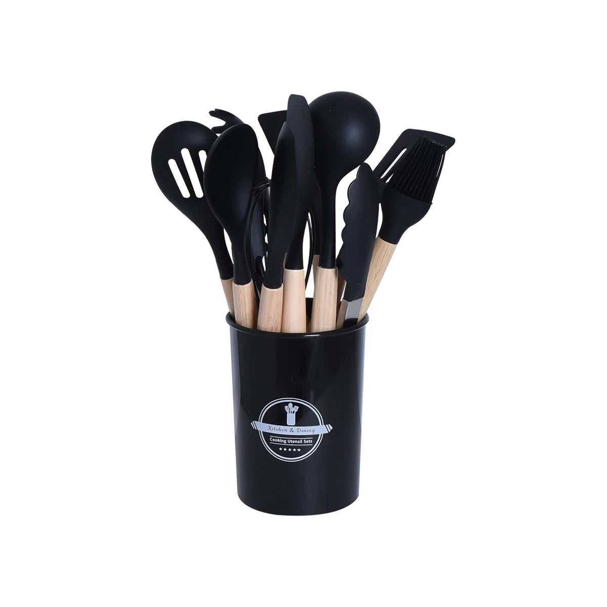 طقم ملاعق طبخ سيلكون مع استاند 12 قطعة الوان متعددة