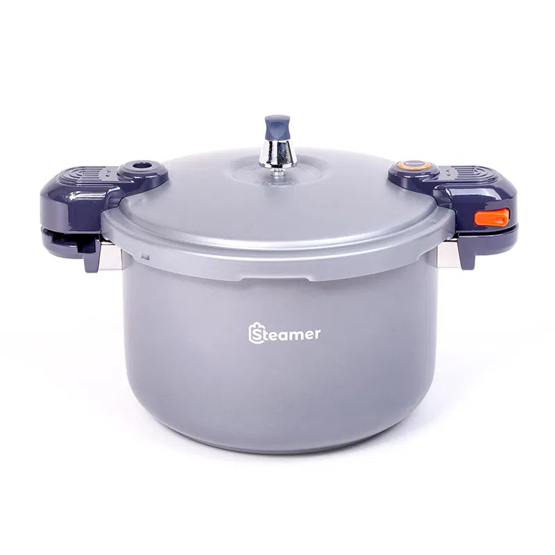 - शुद्ध एल्युमिनियम से बना स्टीमर प्रेशर कुकर