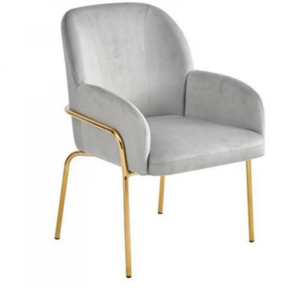 كرسي جلوس مصنوع من المخمل الناعم بتصميم عصري وانيق مع وسادة للمقعد محشية بالإسفنج الطري لتوفير الراحة أثناء الجلوس كما يتميز بأرجل استيل ذهبي تضفي لمسة من الفخامة للتصميم .