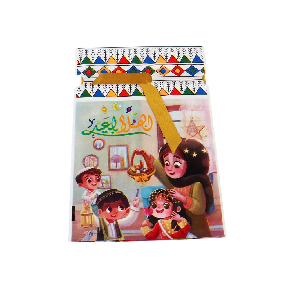 أكياس توزيعات عيديـة بــلاستيكيــة 2 حبه بعبارات عيديـــة متعــددة وصور ورسومات تصاميم مختلفة الأشكال والألـوان