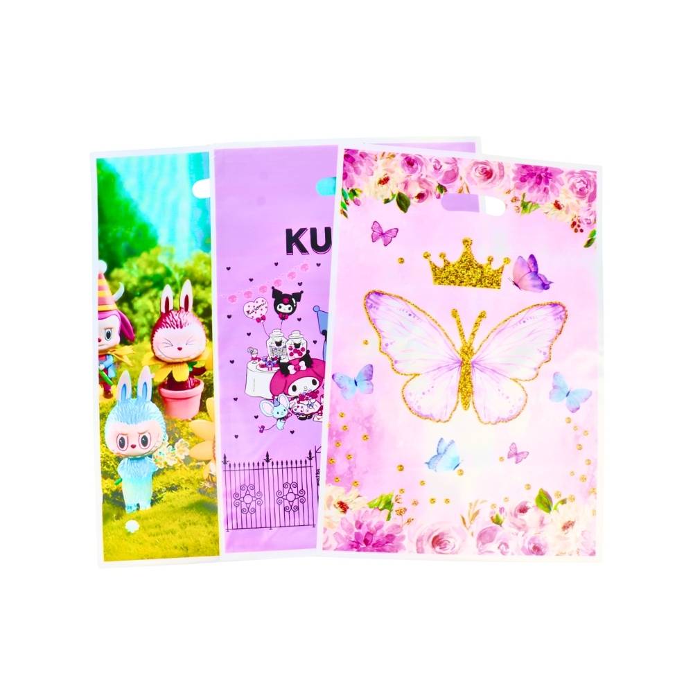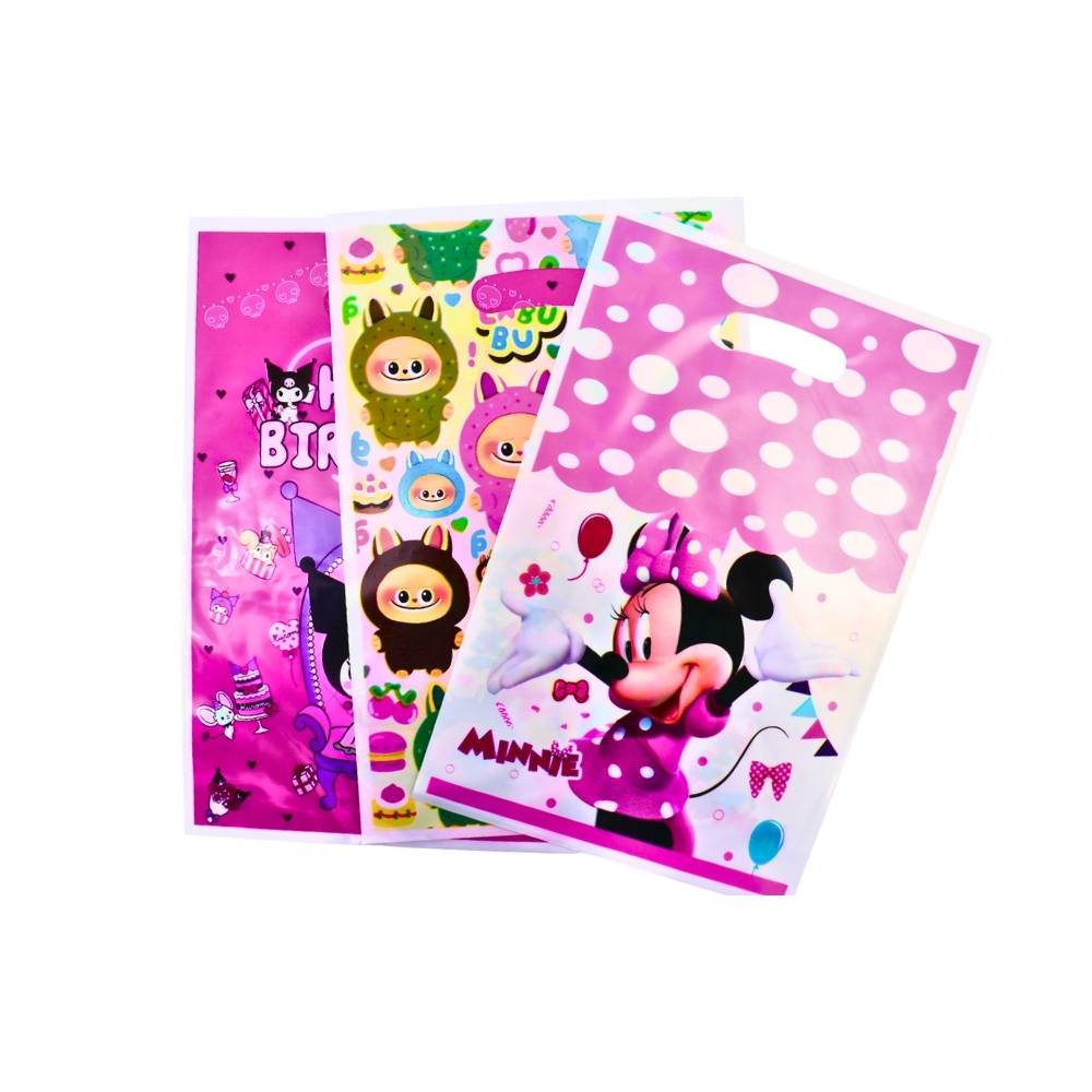 أكياس هدايا كرتونية بتصاميم كرتونية جذابة، متوفرة بنوعين (للأولاد والبنات)، مناسبة للتوزيعات والحفلات والمناسبات المدرسية، مع مقبض علوي لسهولة الحمل.
