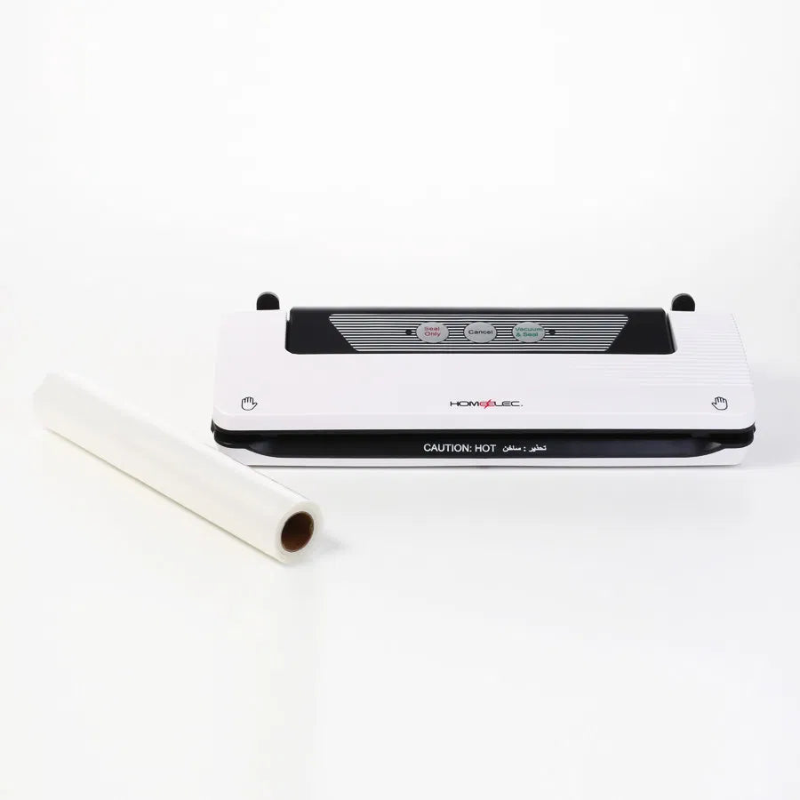 جهاز تغليف وتفريغ الهواء من هوم إلك حفط الطعام لمدة طويلة بسبب عدم تعرضها للهواء الخارجي ابقاء الطعام طازجا و محتفظاً بالنكهات الاصلية تغليف مع تفريغ انواع عديدة من الاكياس مفتاح اللحام وتفريغ الهواء ازرار اللحام زر التوقف رول تغليف مرفق مع الجهاز 110 واط 220- 240 فولت ضمان 3 سنة