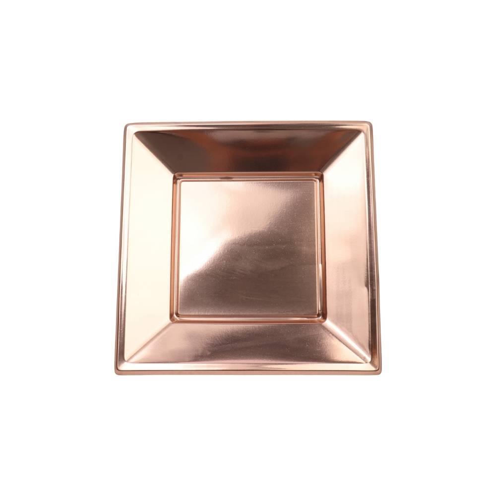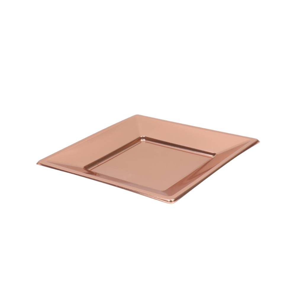 مجموعة صحون بلاستيكية أنيقة بلون نحاسي فاخر تضيف لمسة راقية لمائدة الضيافة. تأتي بتصميم مربع عملي ومقاس مناسب للتقديم، مع خامة متينة وخفيفة تناسب الاستخدام اليومي والمناسبات