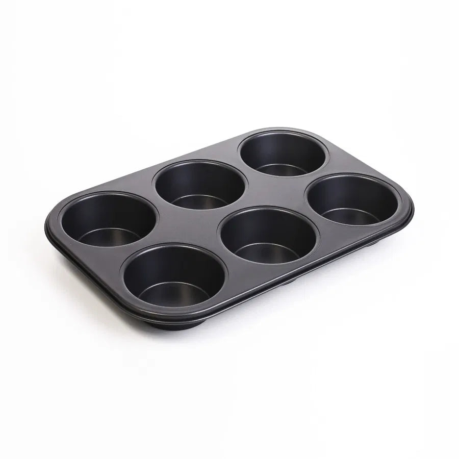 صينية كيك إستيل مستطيل 6 عيون مطلي بمادة التفلون غير قابل للالتصاق الطول 32 cm العرض 21.5 cm الارتفاع 3.8 cm