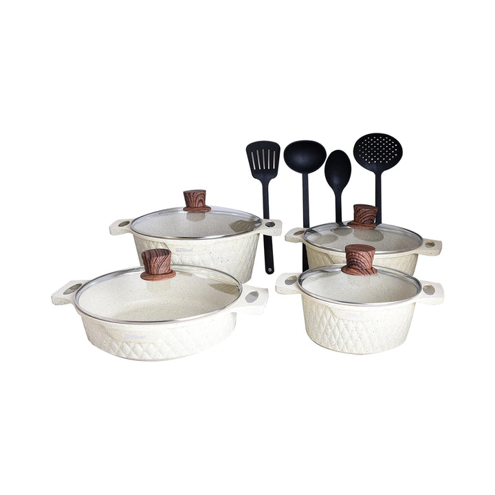 طقم قدور طبخ جرانيت بغطاء زجاج 12قطعة بيج 9502438
