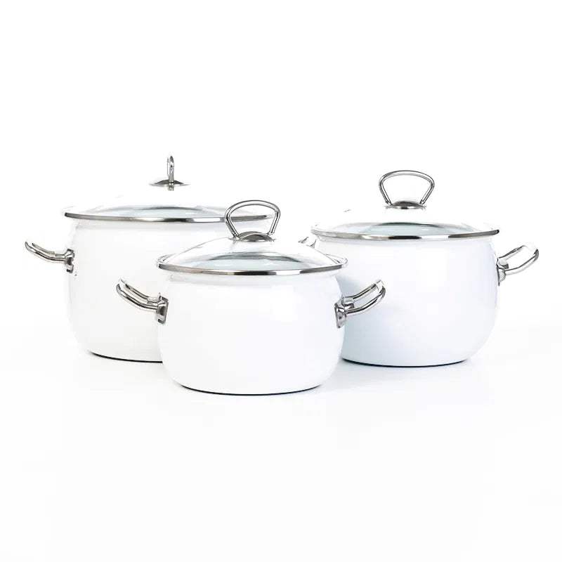 طقم قدورغضار أوكراني 3 قطع بغطاء زجاجي قدر مقاس 20 cm قدر مقاس 24 cm قدر مقاس 26 cm اللون أبيض