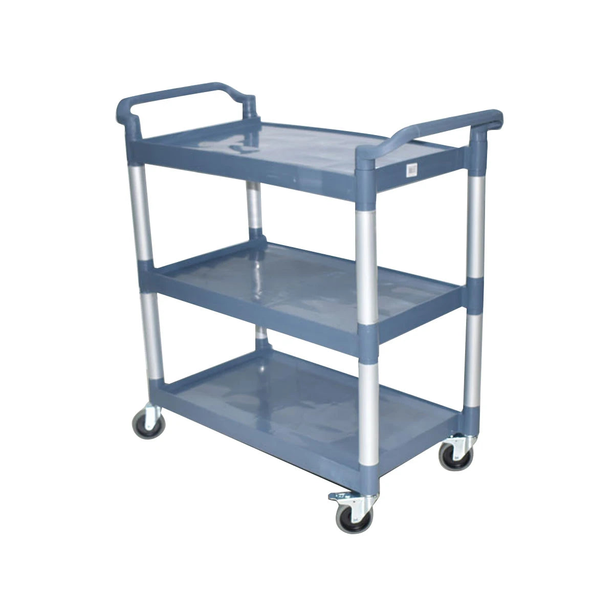 عربية تقديم بلاستيك بعجلات 3 دور ازرق