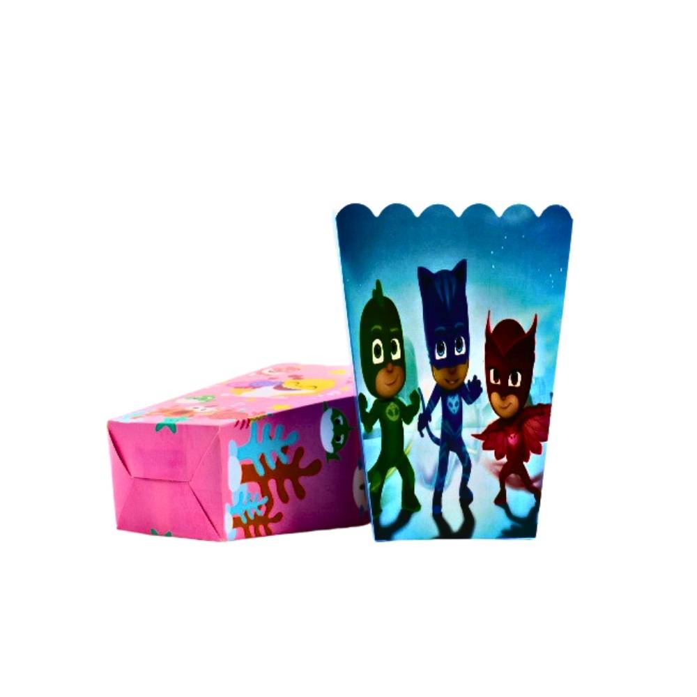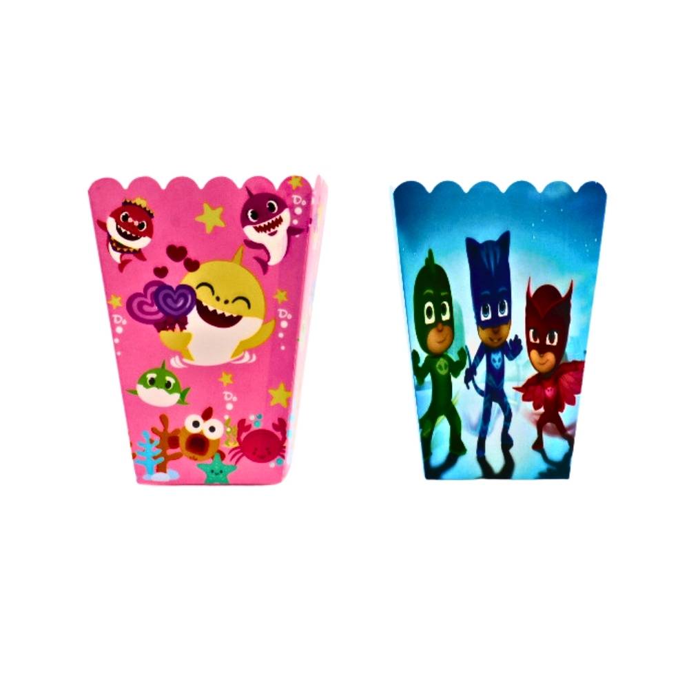 علب تقديم فشار وأطعمة خفيفة بتصاميم كرتونية ملونة ومحببة للأطفال، تضيف جوًا مرحًا ومميزًا للحفلات والمناسبات.
