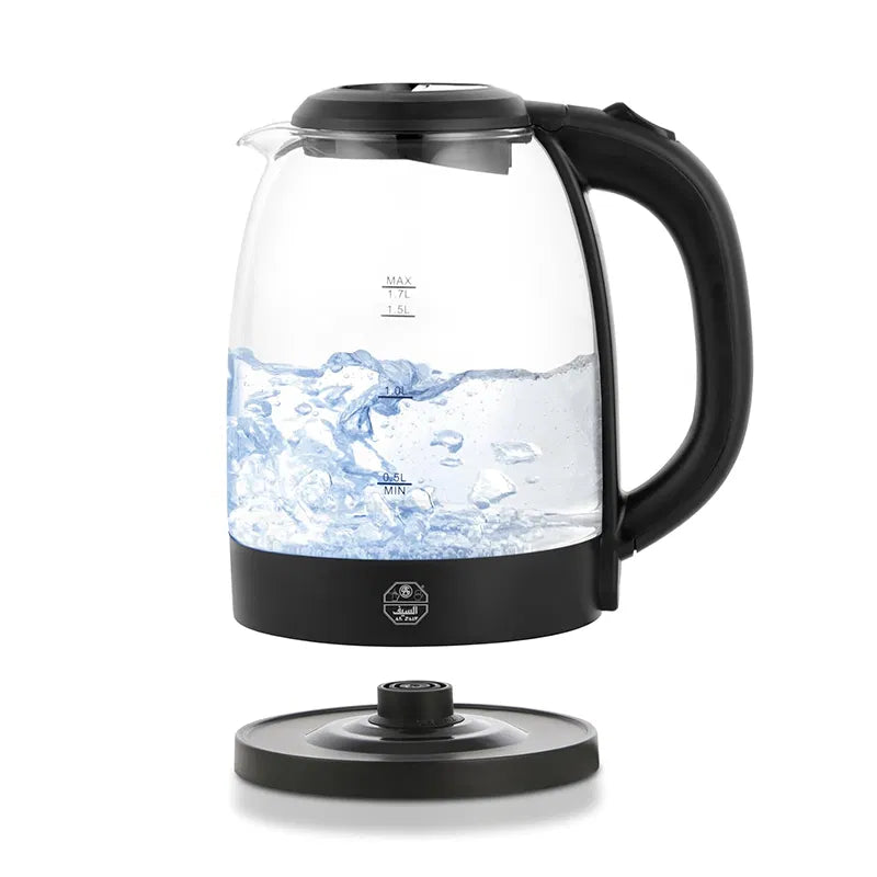- اللمسة النهائية الزجاجية الشفافة تجذب الانتباه، بينما تضيف الزخرفة السوداء لمسة أنيقة. سهل الاستخدام، بفضل ميزان المياه والغطاء المريح