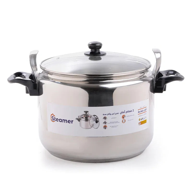 قدر ضغط ستيمر استيل 15 لتر مع شبك مندي و غطاء زجاج