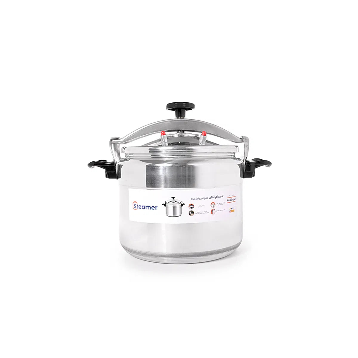 قدر ضغط ستيمر المنيوم  صمام ضغط وقفل غطاء لإستخدام امن  غطاء سهل الفتح والاغلاق قاعدة توزيع حراري مقبض مقاوم للحرارة  منفذ في الغطاء لإخراج البخار غير قابل للإلتصاق السعة 5 لتر ضمان 3 سنوات