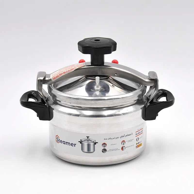 قدر ضغط ستيمر المونيوم 2 صمام امان + شنطة غطاء سهل الفتح والاغلاق قاعدة توزيع حراري مقبض مقاوم للحرارة منفذ في الغطاء لاخراج البخار غير قابل للالتصاق السعة 2 لتر ضمان 3 سنوات