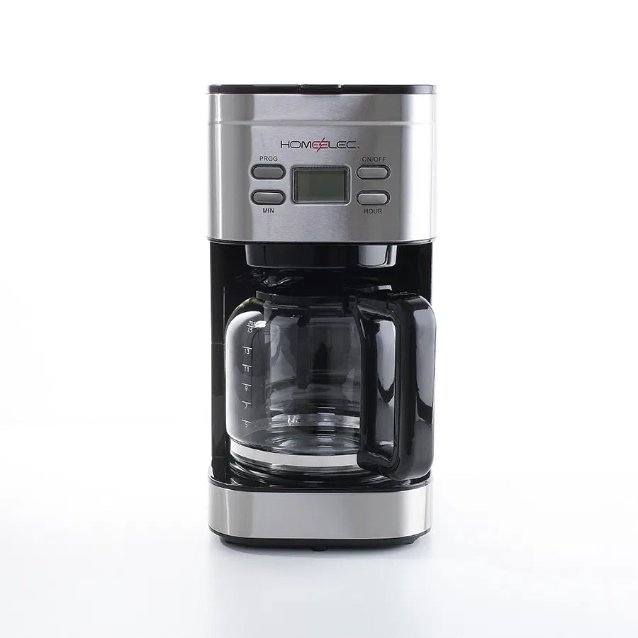 يمكنك الان تحضير القهوة في منزلك بكل سهولة وسرعة مع جهاز تحضير القهوة من هوم إلك ويتميز الجهاز : العمل تلقائيا بعد ساعتين وظيفة الضبط المسبق بعد التجهيز عند الانتهاء من تحضير القهوة يتحول الجهاز الى وضع الاحتفاظ بالحرارة شاشة رقمية + 4 ازارير مقياس مستوى الماء ملعقة قياس + فرشة تنظيف صغيرة فلتر من النايلو قابل للازالة لسهولة التنظيف وعاء زجاجي للقهوة يكفي لسكب من 12-15 أكواب سعة خزان الماء 1.5 لتر اللون فضي 900 واط 220-240 فولت ضمان 3 سنوات