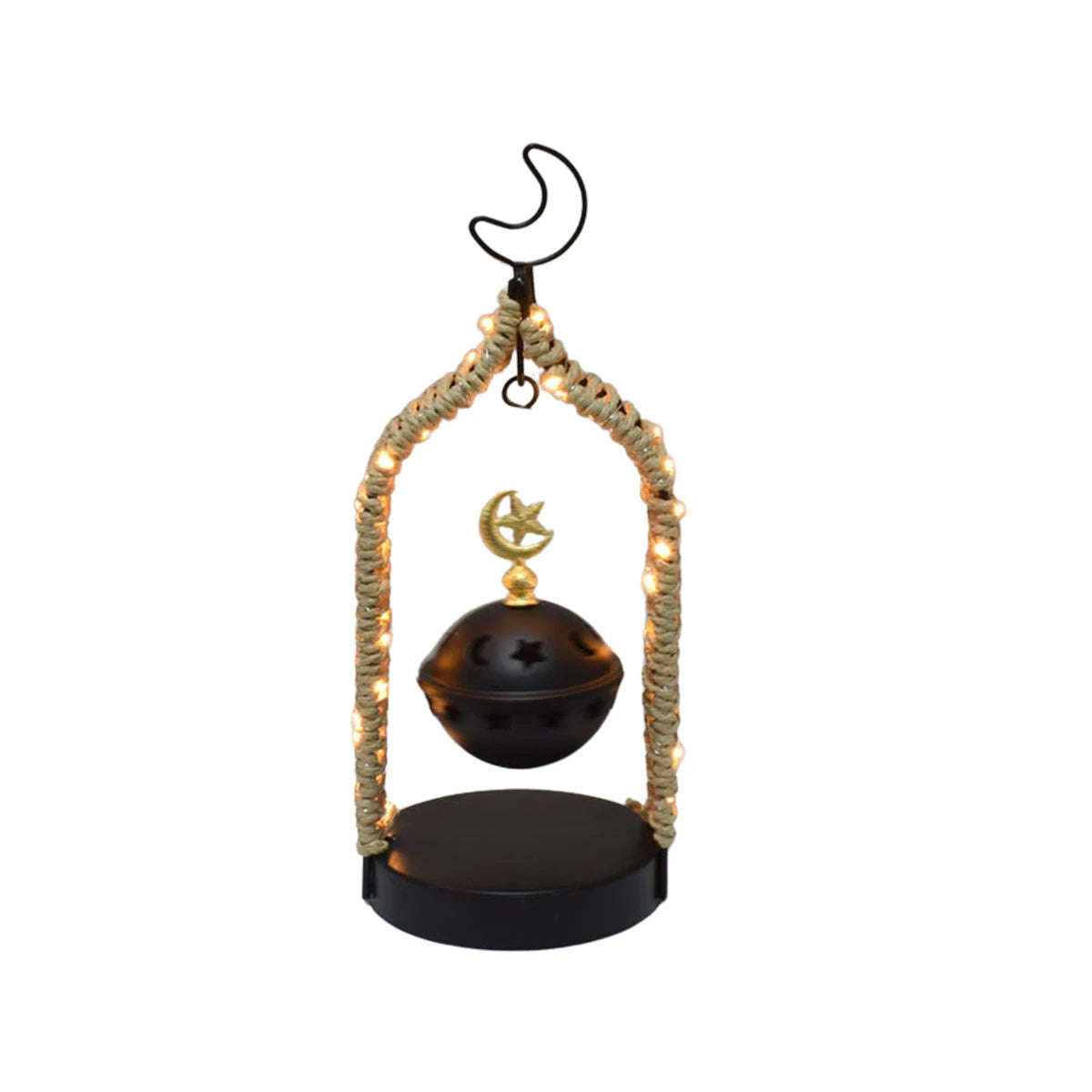 مبخرة معدنية رمضانية مضيئة تعمل بالبطارية بتصميم انيق .