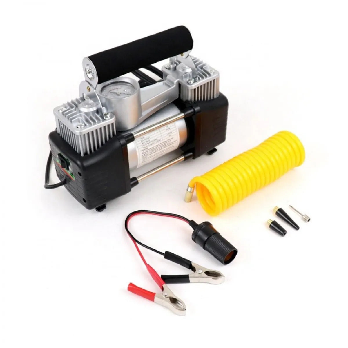 لنفخ الاطارات في السيارات.فيه تكوين مدمج من حلقات المكبس عالية المقاومة للاهتراء ودائم وموثوق.، وماطور الهواء مريح وموفر للوقت.