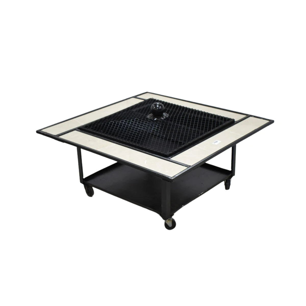 منقل شواء معدني بحواف رخام و بمساحة داخلية عميقة مزود بغطاء شبك للحماية ولتغطية المنقل بعد الاشعال و بعجلات لسهولة الحركة والتنقل .