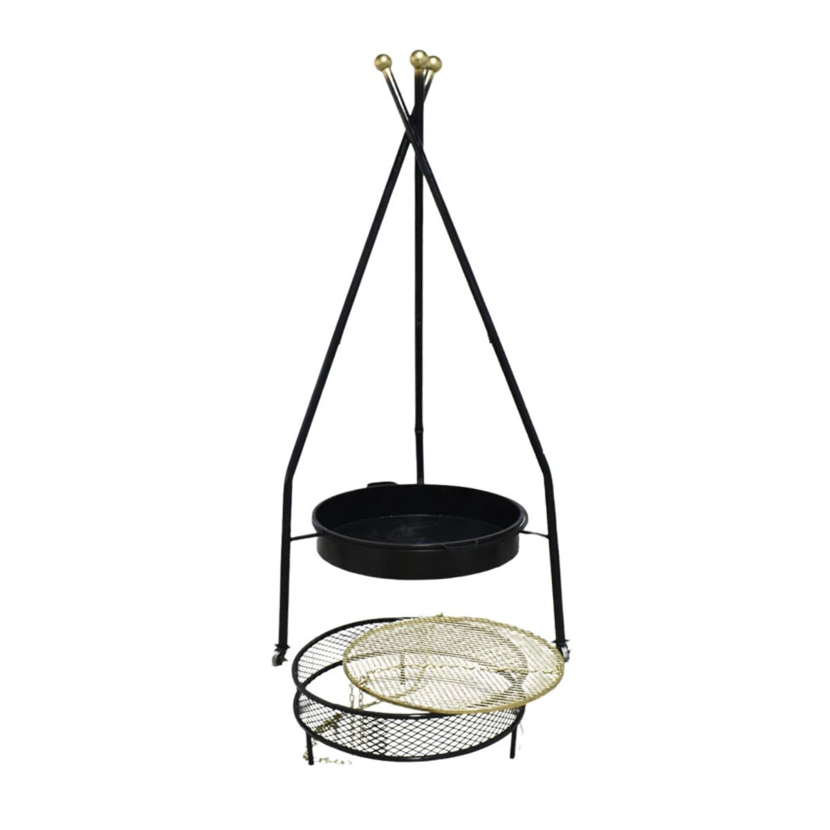 منقل شواء معدني بمساحة داخلية عميقة مزود بغطاء شبك للحماية ولتغطية المنقل بعد الاشعال و بعجلات لسهولة الحركة والتنقل .