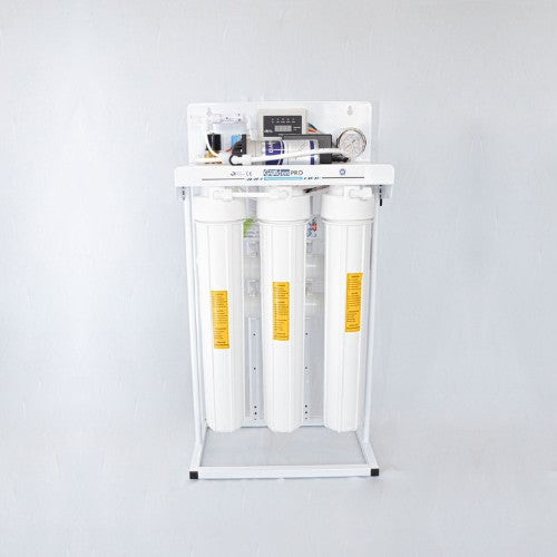 | محطة تحلية سوبر 200 جالون  . ضمان سنتين جهاز تحلية سوبر للمنازل والمطاعم والكافيهات ذات الاستهلاك المرتفع مميزات الجهاز: قدرة إنتاجية تصل إلى 800 لتر من المياه المحلاة في اليوم الواحد أي ما يعادل 42 قارورة مياه معبأة كبيرة قاعدة تثبيت أرضية المرحلة الأولى (الفلتر القطني): تتكون من شمعة قطنية مصنوعة من مادة البولي بروبيلين تنقي حتى 5 ميكرون وتعمل على إزالة الشوائب الصلبة مثل الرمل والطين والطحالب. المرحلة الثانية (فلتر الكربون الحبيبي): مصنوع من الكربون المنشط حراريًا وظيفته إزالة الغازات الذائبة ومعالجة المياه من المواد الغير مرغوبة مثل الكلور والطعم والرائحة واللون. المرحلة الثالثة (فلتر الكربون الصلب): مصنوع من الكربون الصلب مع مسام 1 ميكرون وظيفته إزالة أصغر الشوائب قبل دخول الماء إلى المرحلة الرابعة. المرحلة الرابعة (فلتر الأملاح): وهي وحدة تعرف باسم الغشاء. تحتوي على مسامات دقيقة وضيقة للغاية تصل إلى 0.00001 ميكرون وتعتمد على خاصية التناضح الأسموزي العكسي وإزالة الأملاح والبكتيريا والمعادن الثقيلة، تبدأ من 96% كمعدل طرد يسمى الطرد الميكانيكي الذي لا يستخدم أي مواد كيميائية المرحلة الخامسة (فلتر البوست كربون): فلتر كربوني مصنع من قشور جوز الهند يعمل على إزالة أي رائحة أو طعم غير مستساغ بعد الماء المخزن في الخزان. |