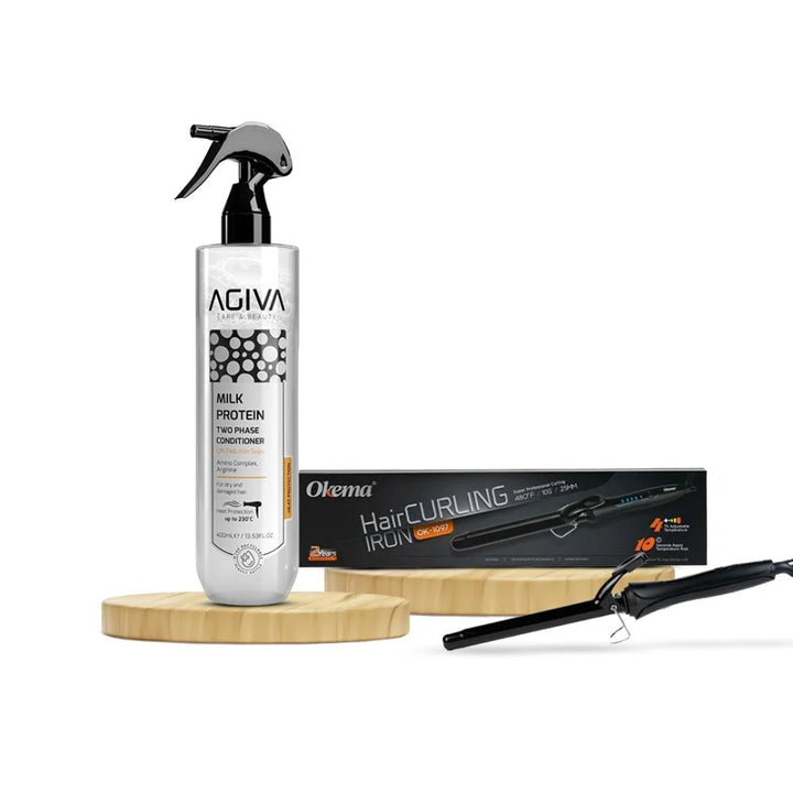 لإطلالة متألقة وشعر صحي ولامع، تقدم لكِ مجموعة مثالية تضم فير لف وتجعيد الشعر من اوكيما بمواصفات احترافية، مع بخاخ حماية الشعر من الحرارة الغني ببروتين الحليب، لتحصلي على تسريحة أنيقة دون القلق من التلف.