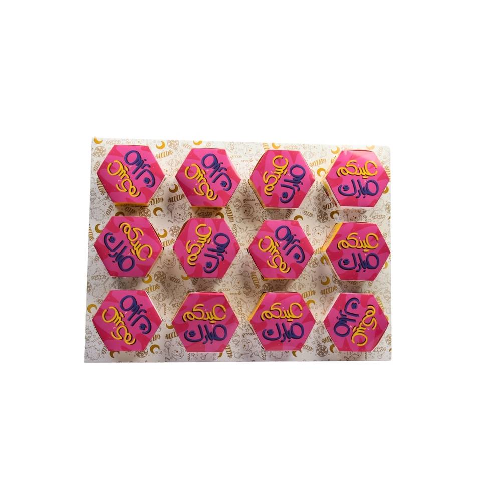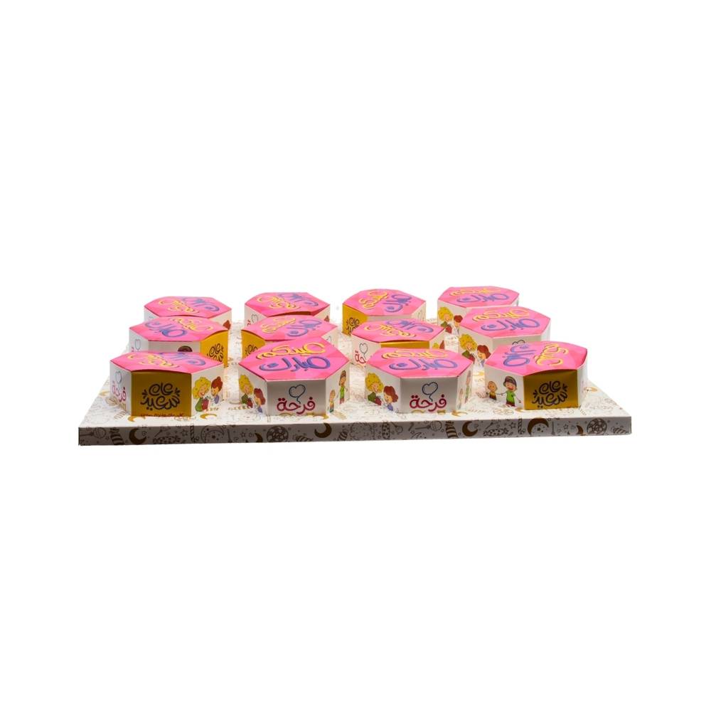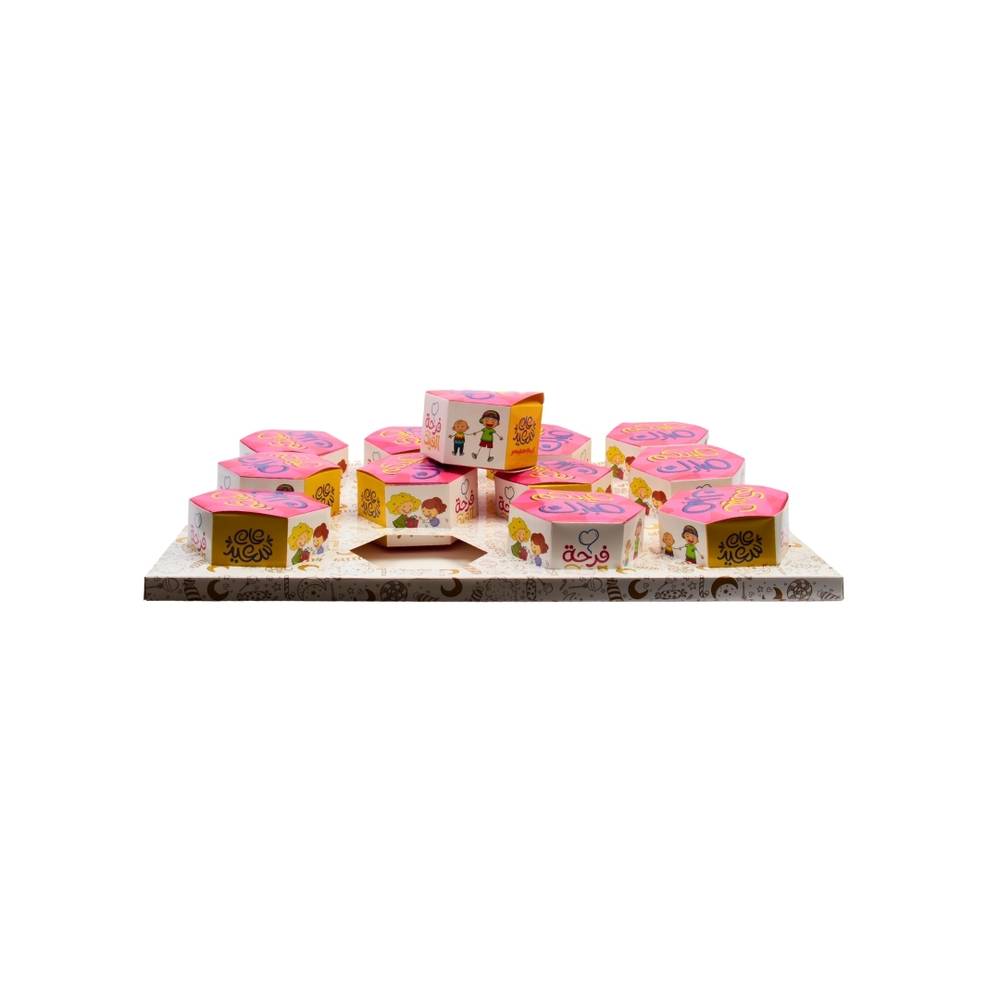 استاند توزيعات عيد ورقــي متعــددة الأشكال والتصاميم صندوق شكل مستطيل يحتوي علي فتحات لحفــظ 12 بوكس صغيرة سداسي الشكل
