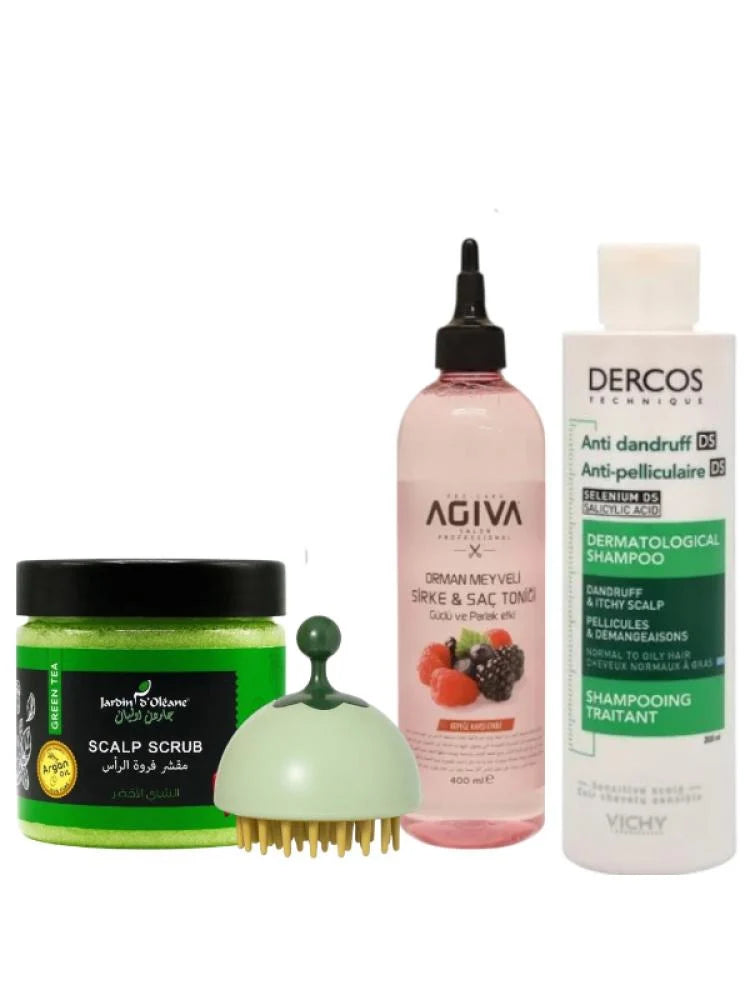 احصلي على فروة رأس صحية وشعر نظيف ولامع مع هذا البكج المتكامل الذي يجمع بين أقوى المنتجات المختصة في محاربة القشرة وتهدئة الحكة وتقوية الشعر.