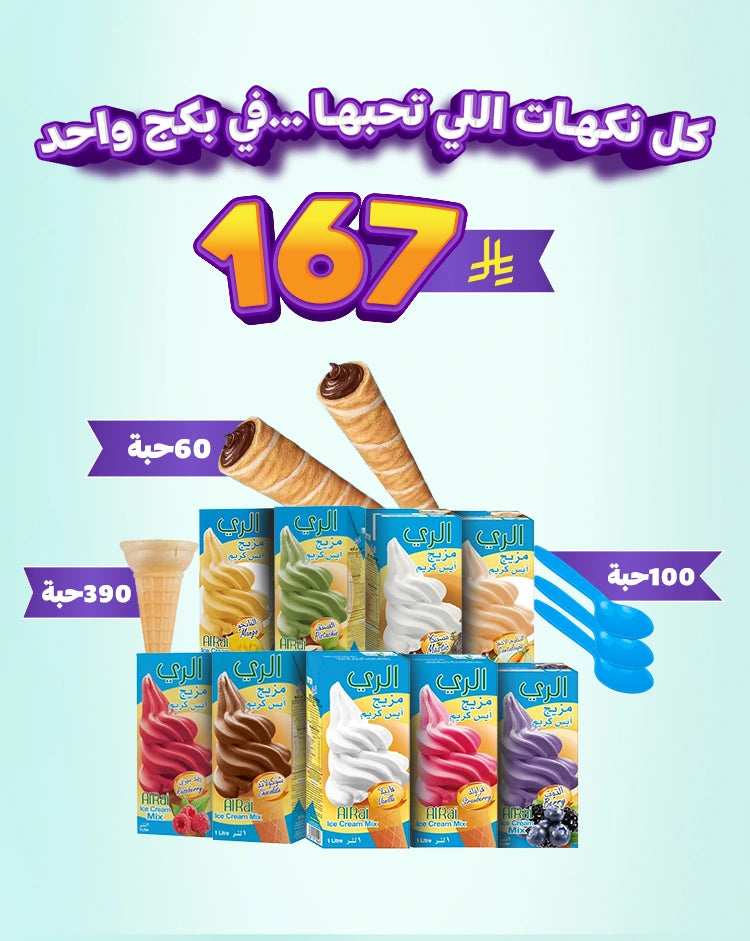 يحتوي البكج على 9 نكهات متنوعة من مزيج الآيس كريم: