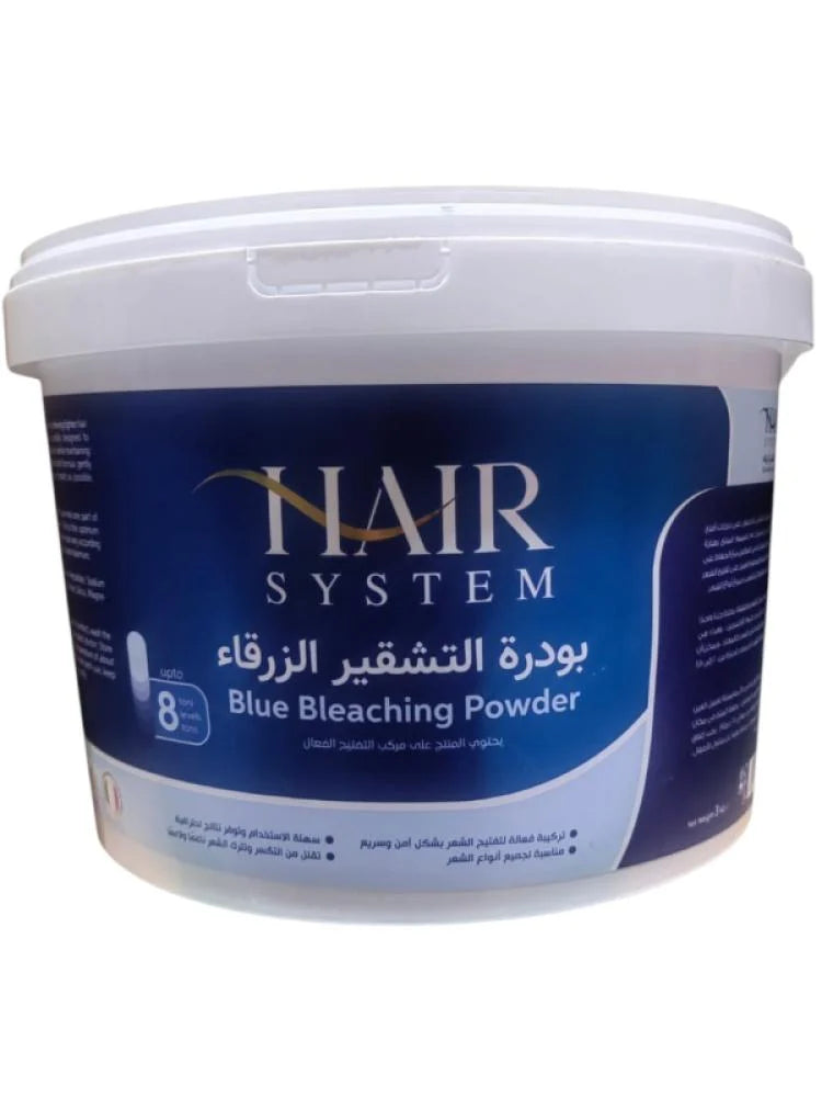 امنحي شعركِ إشراقة استثنائية ونتائج تفتيح مذهلة مع بودرة التشقير الزرقاء من هير سيستم.