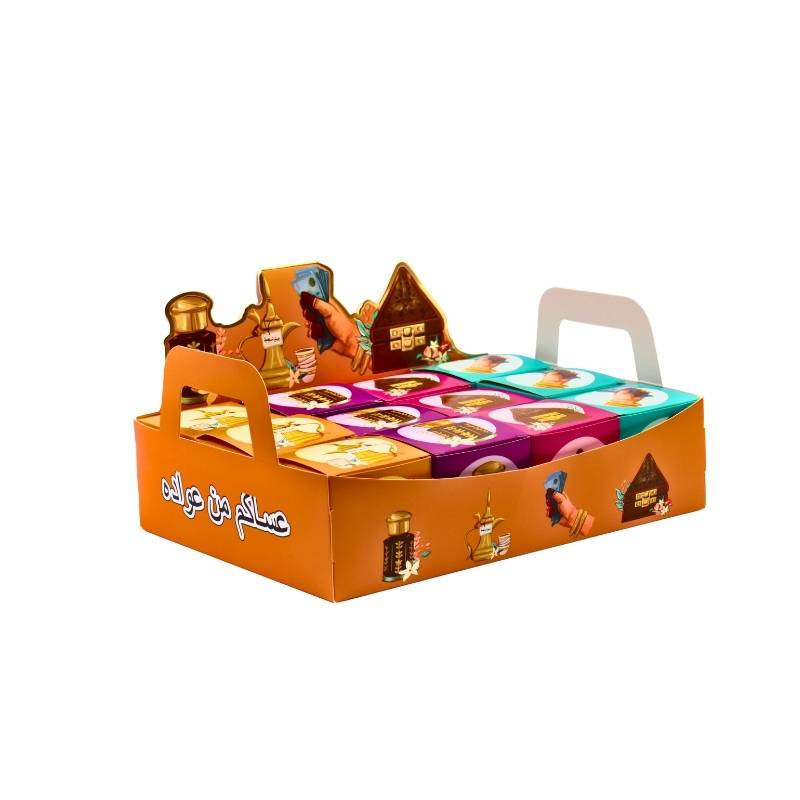 توزيعات عيد كرتونيـة حامل توزيعات يحتوي علي 12 بوكسات صغيرة ملونه بتصميم رسومات منوعـه وعبارة العيد