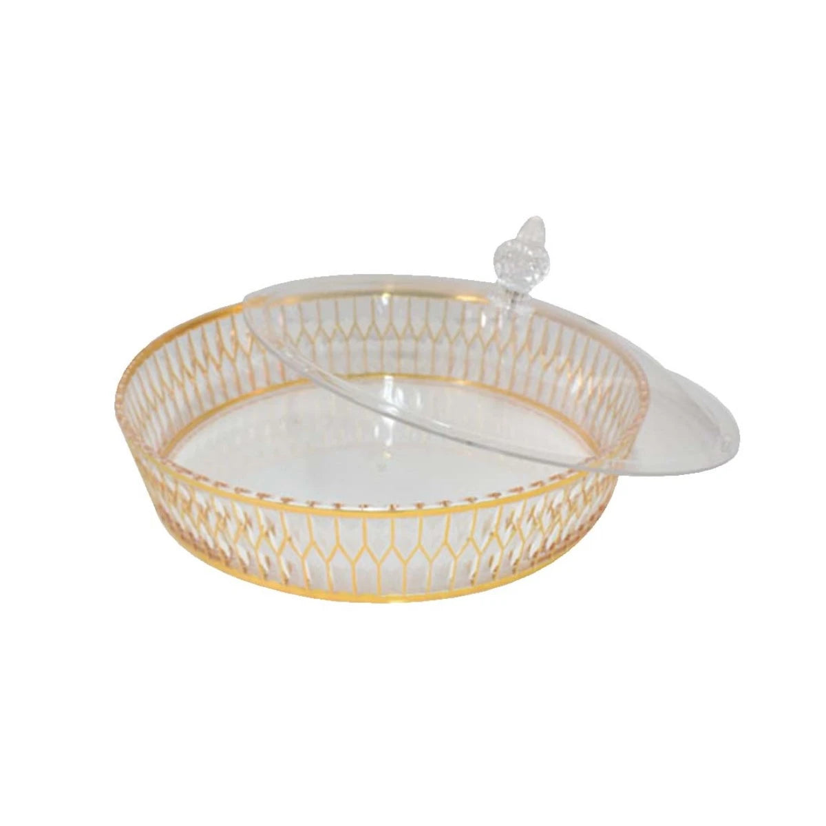 صينية تقديم اكريليك دائري شفاف ذهبي 30 × 30 × 7 سم 6004103