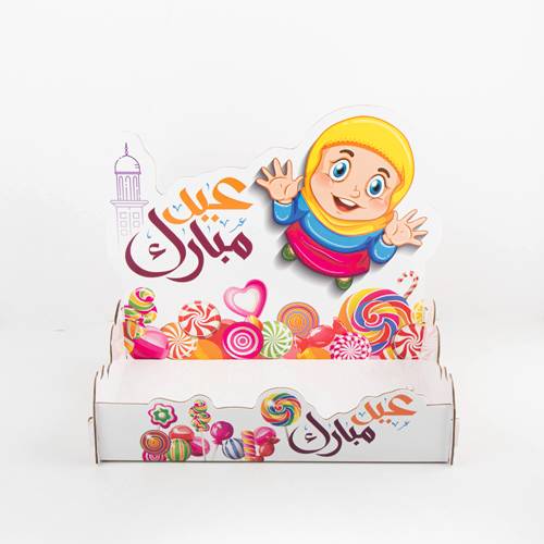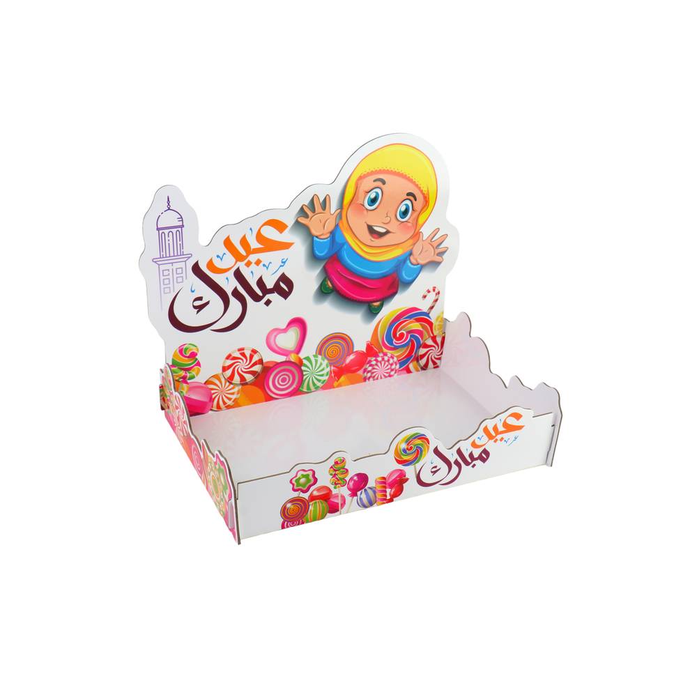 صينية ضيافـة للعيد مصنوعـة من الكرتون المقـوى بطبـاعـة وجهين بتصميم بناتـي بعبـارة للعيـد (عيد مبارك) 1 قطعـة